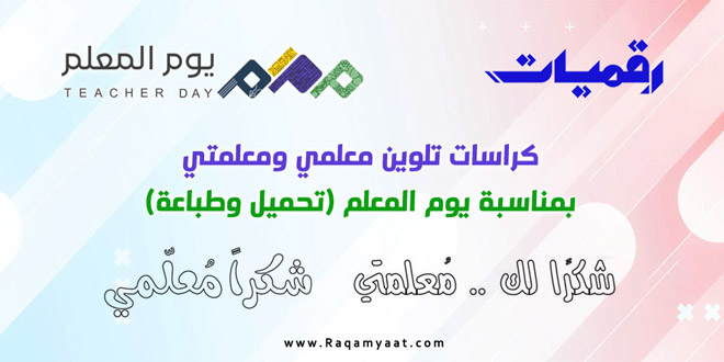 كراسات تلوين معلمي ومعلمتي بمناسبة يوم المعلم (تحميل وطباعة) ..