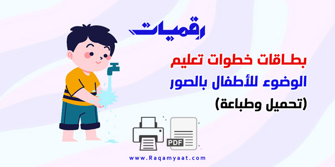 بطاقات خطوات تعليم الوضوء للأطفال بالصور (تحميل وطباعة)