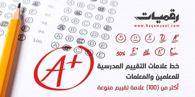 خط علامات التقييم المدرسية للمعلمين والمعلمات .. خط مفيد من تركيب فوزية سراج، يحتوي على علامات التقييم المدرسي، يستخدم الخط بعد التثبيت بالأرقام الإنجليزية من 1 إلى 102، وهو متاح للتحميل المجاني الان.